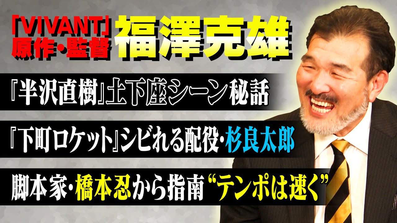 【半沢直樹】【VIVANT】監督・福澤克雄が語る「半沢直樹」名シーンの秘話|「下町ロケット」の杉良太郎は絶妙な配役だった?|『VIVANT』で伝えたい“日本の良いところ”【福澤克雄✕馬場康夫】〈後編〉 CATEGORY:対談 > 監督 ディレクター, プロデューサー